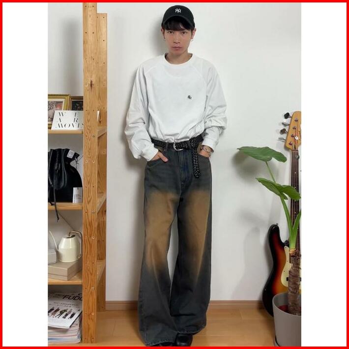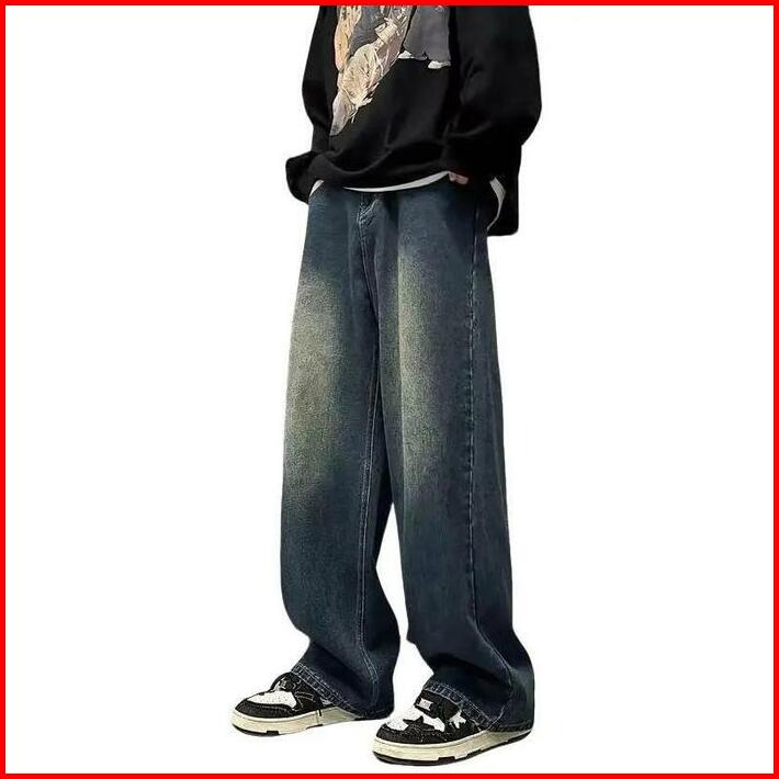Celana Baggy Jeans Wide Leg Wisker Lebar Gombrong Skena Pria Loose Straight Fit Big Oversize Jumbo Panjang Keren Hitam N