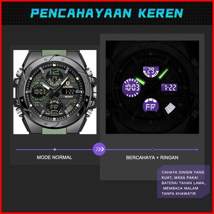Licarr Jam Tangan Pria Analog Digital Original Fashion Sporty Dengan Tali Silikon Anti Air Man Watch 9515