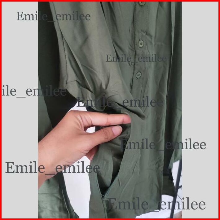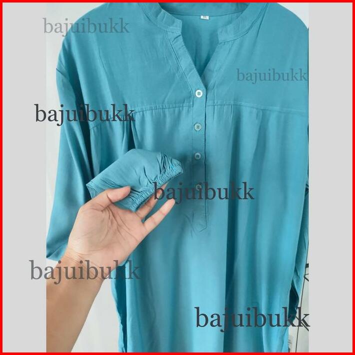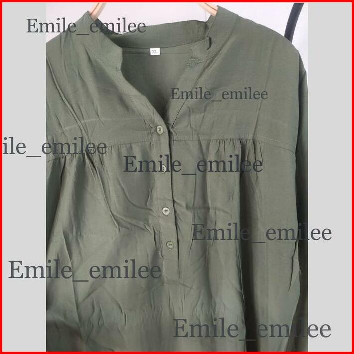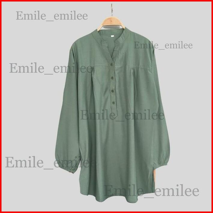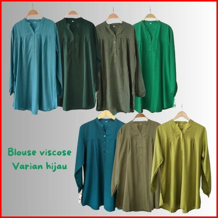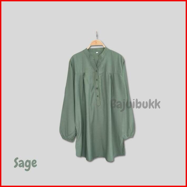 Atasan Blouse Wanita Polos Katun Viscose Jumbo Tangan Karet Hijau Sage Nyaman Kancing Panjang