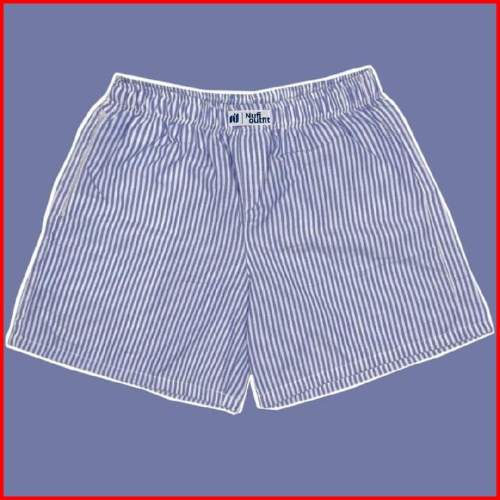 Celana Pendek Boxer Basic Salur Pria Wanita Fit Panjang Shorts Dewasa Santai Distro Motif Garis