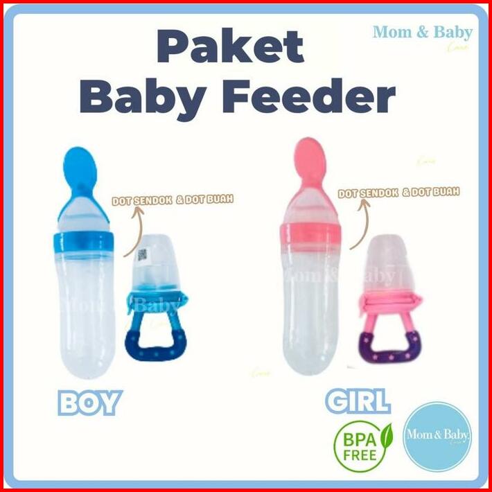 Paket Baby Feeder Sendok Botol Alat Makan Mpasi Bayi Dot Buah N Biru Boy