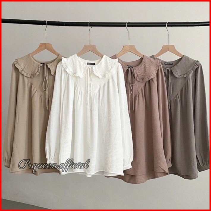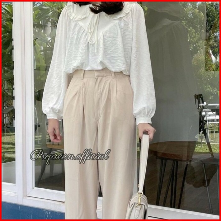 Atasan Wanita Blouse Lengan Panjang Big Size Putih Korea Terbaru