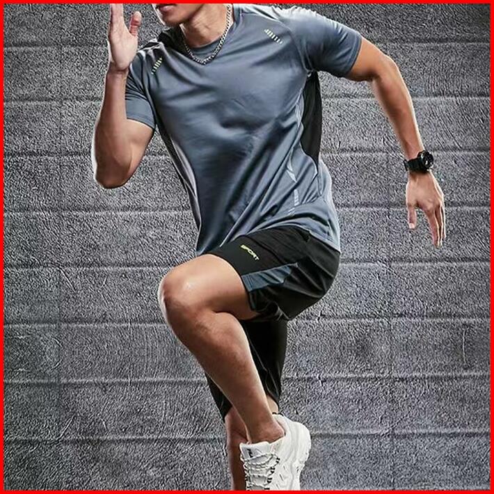 Kamb Kaos Pria Set 2 Bagian Olahraga Yang Menyerap Keringat Dan Cepat Kering Olahraga Pakaian Sport