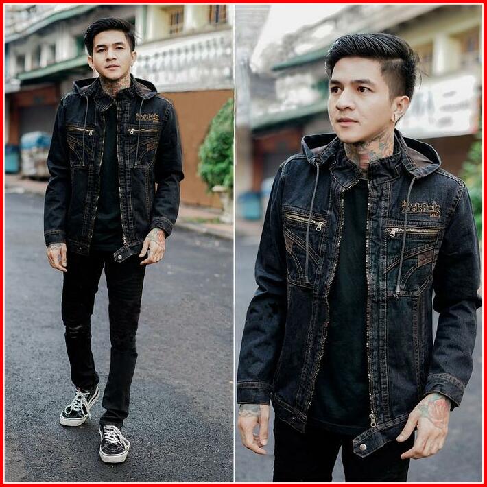 Jaket Jeans Premium Zipper Kupluk Varian Warna Dark Brwon Migt Nigt Blue Ligt Blue Denim Nyaman Panjang Pria Top Keren D