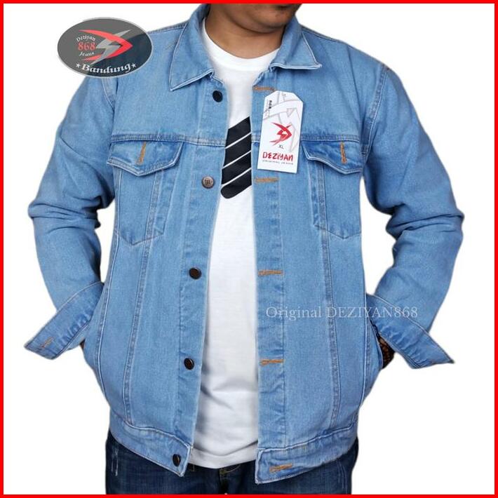 Jaket Jeans Pria Dewasa Biowash Jaket Denim Jaket Kancing Lembut Parka Semi Formal Cowok Keren