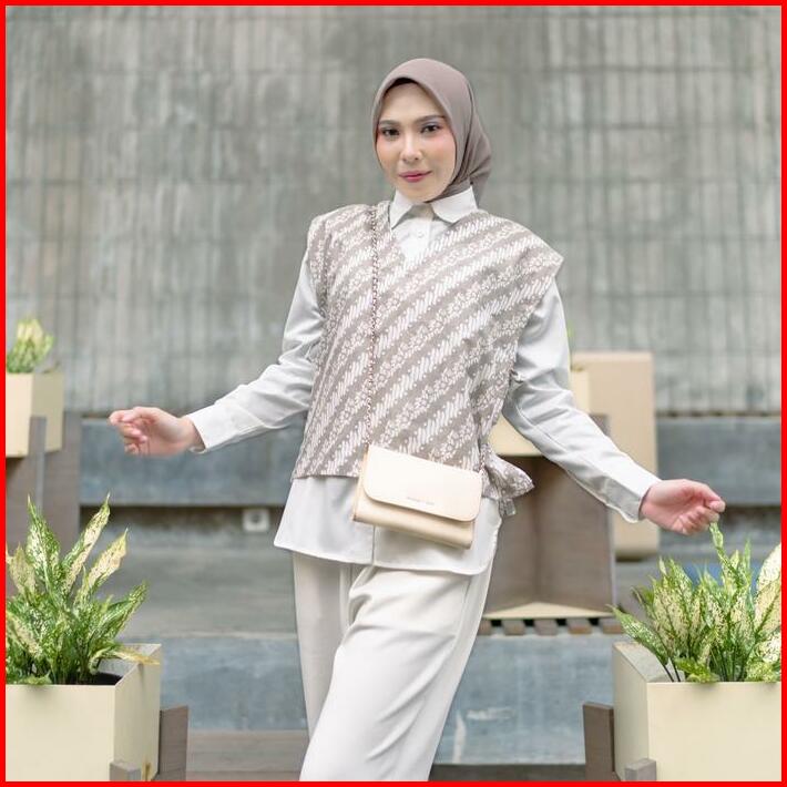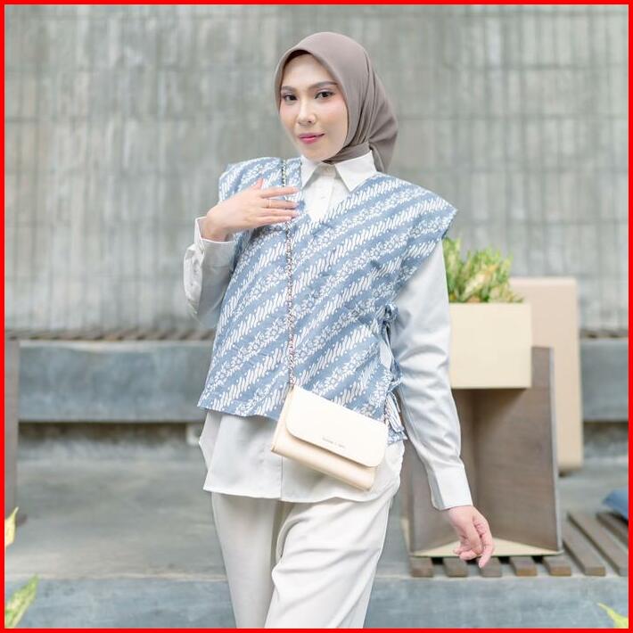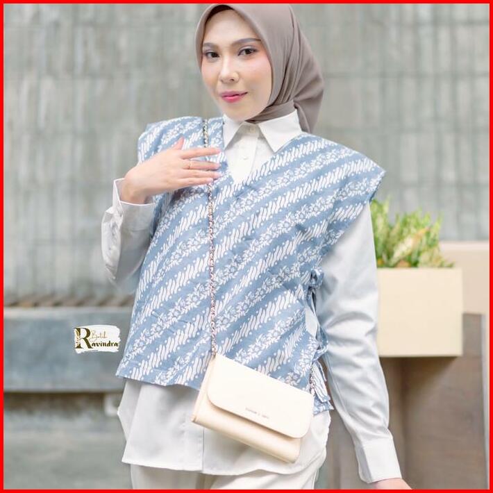 Batik Ravindra Outer Batik Seno Bunga Tali Samping Vest V-neck Rompi
