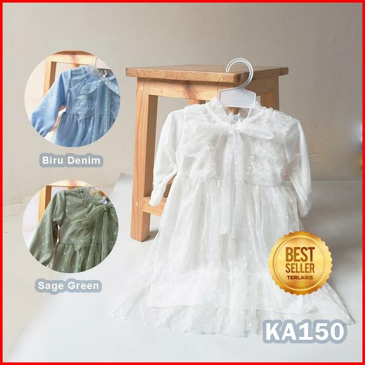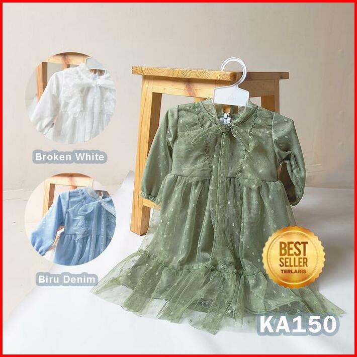 Biru Denim Dress Anak 1 Tahun Model Terbaru 2023 Gaun Motif Polkadot Bayi 6 12 Bulan Warna Biru Muda Soft Blue Kondangan