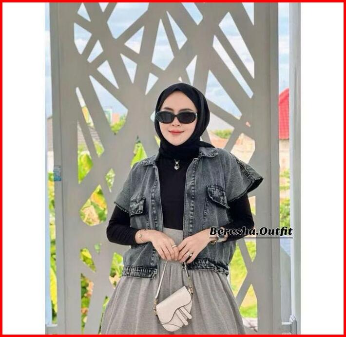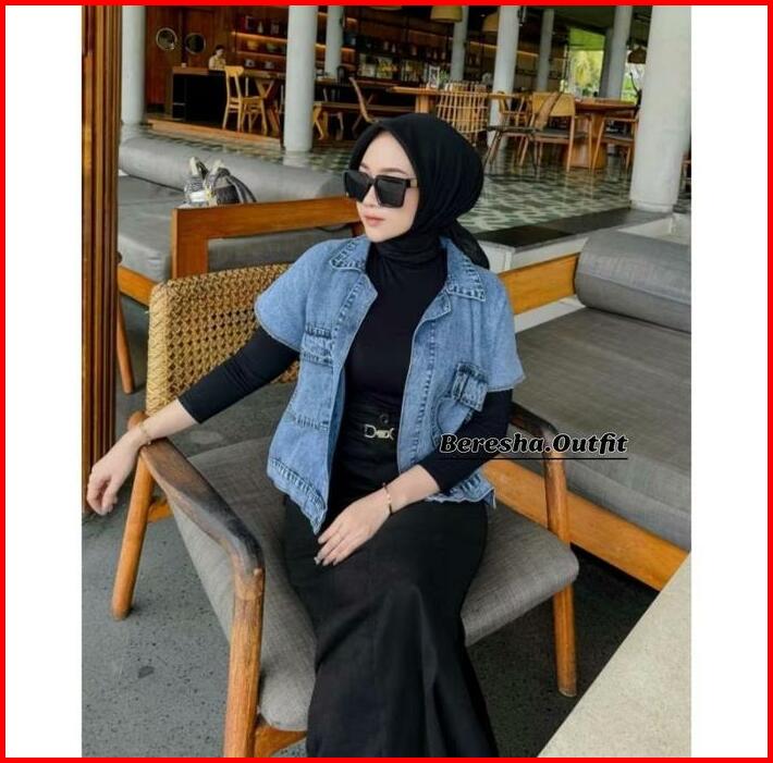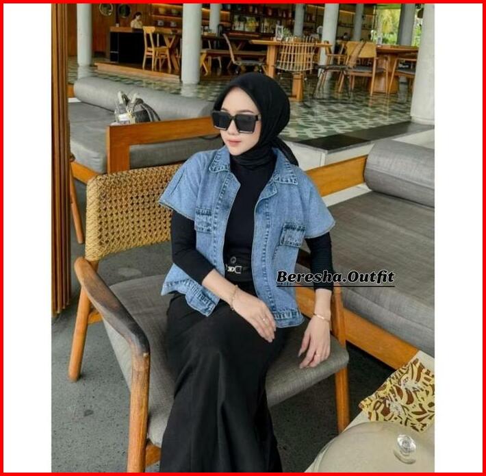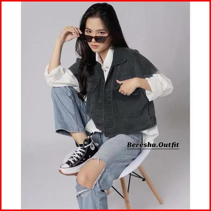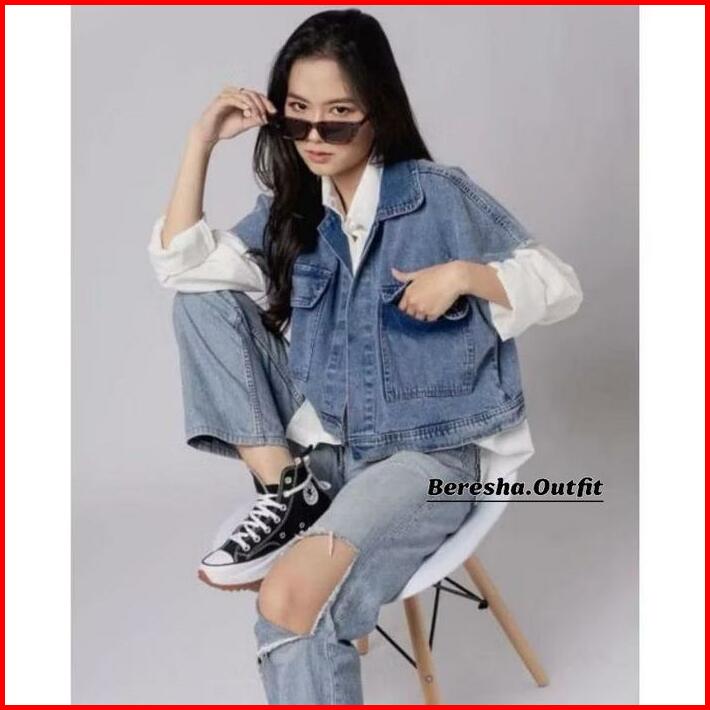 Atasan Jeans Wanita Outer Vest Denim Ld 120 Jumbo Bahan Jins Premium Model Korean Style Jumbo Rompi Tanpa Lengan