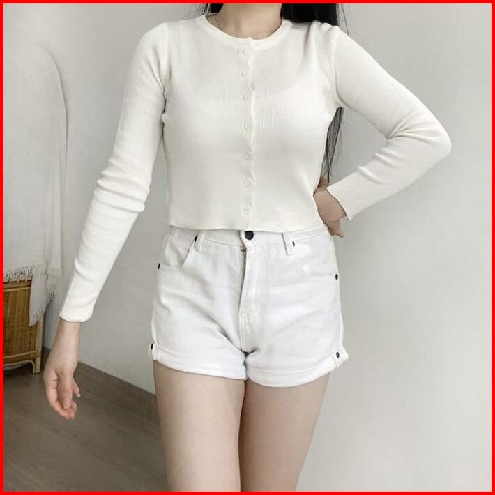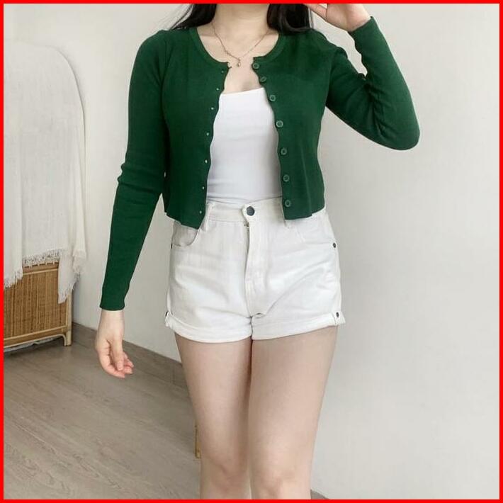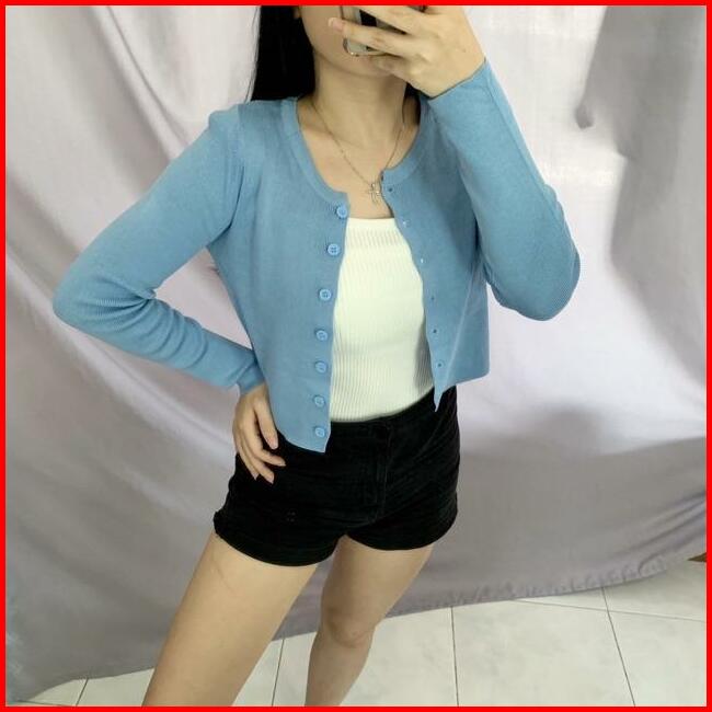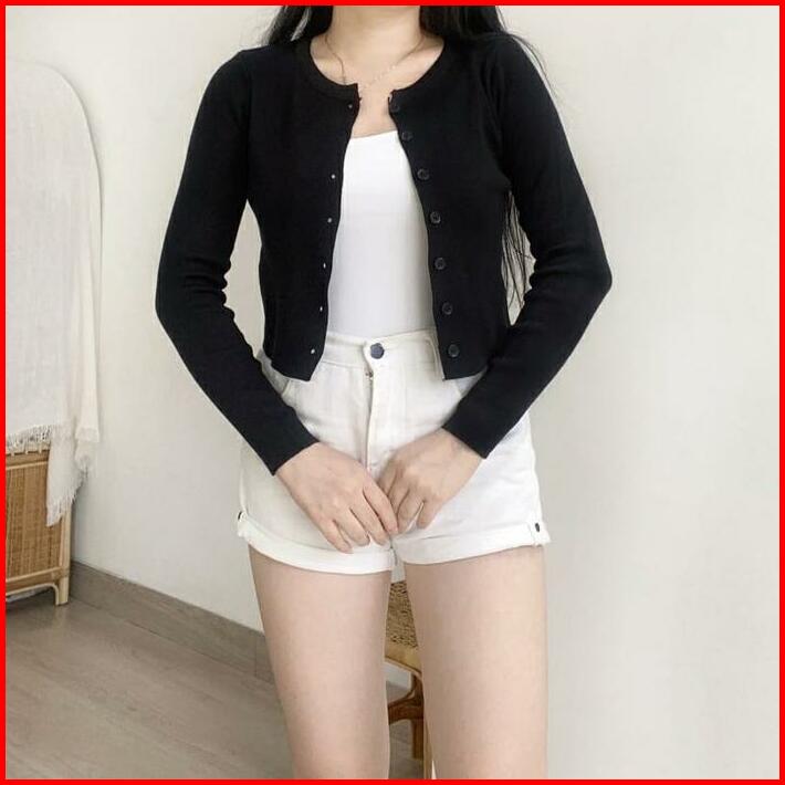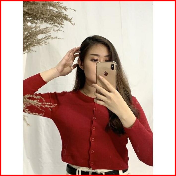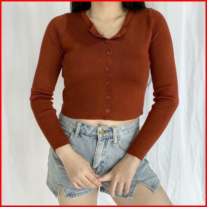 Baju Outfit Cewek Crop Top Bailey Rajut Cropped Botton Shirt Long Slive Cardigan Polos Lembut Nyaman Atasan Wanita Tanga