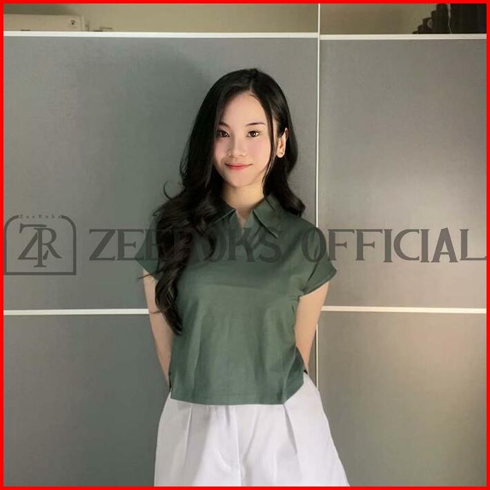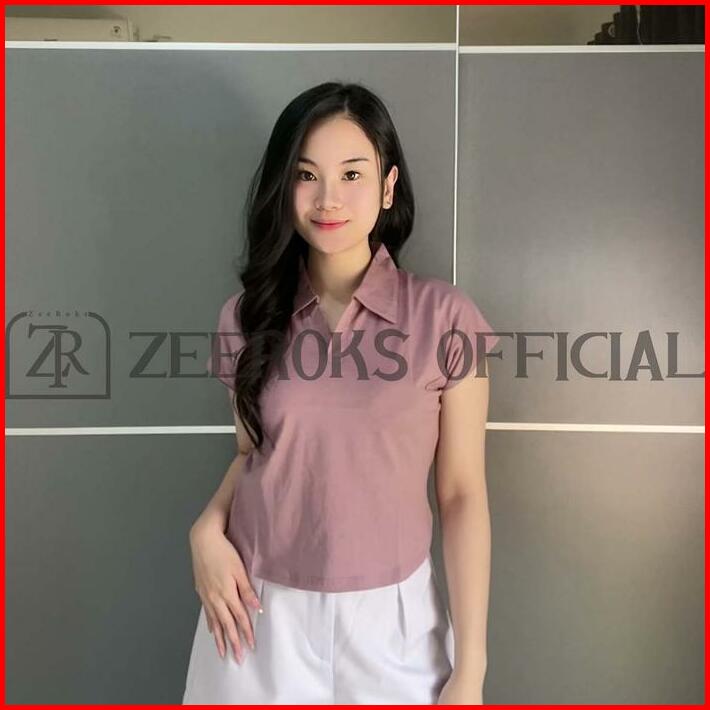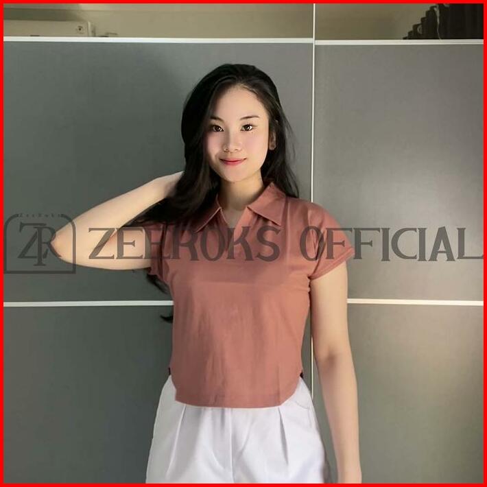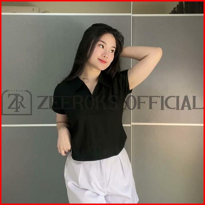 Zeeroks Baju Wanita Crop Top Leher Kerah Polo Lengan Pendek Bahan Cotton Combed Kaos Cewek
