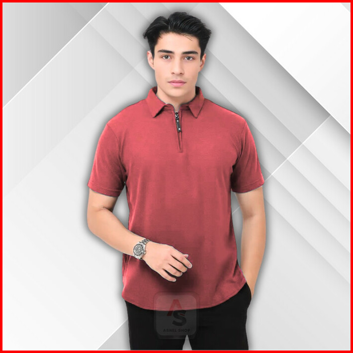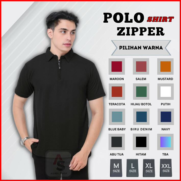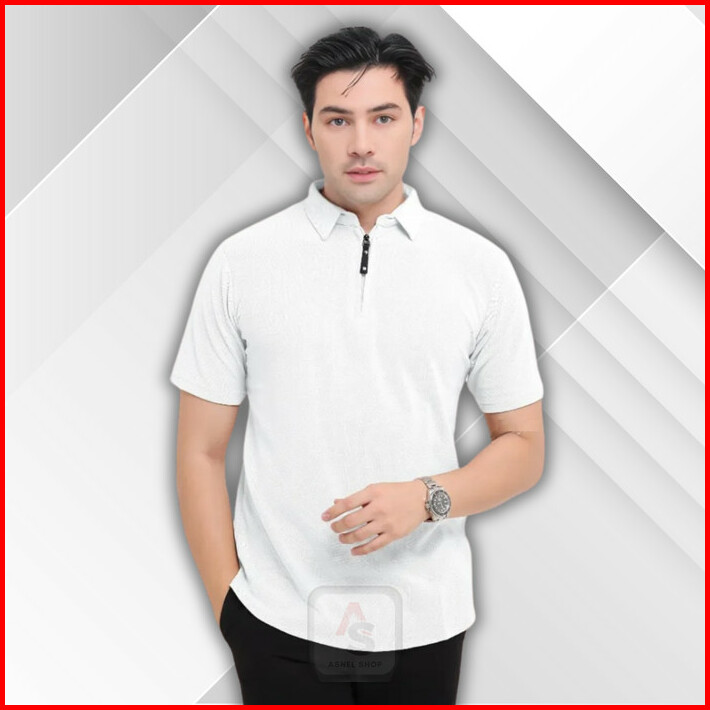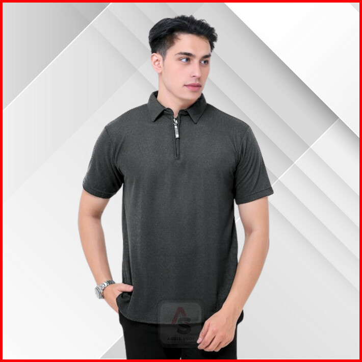 Kaos Kerah Polos Zipper Pria Dewasa Lengan Pendek Polo Shirt Resleting