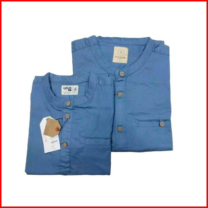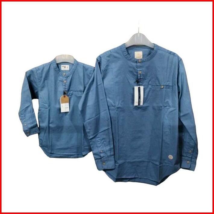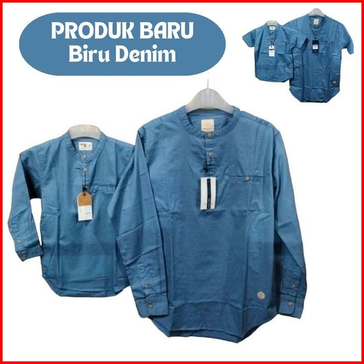 Biru Denim Baju Kemeja Koko Kemko Pasangan Couple Ayah Anak Lengan Pendek Dan Panjang Kancing 1 2 Dan Kancing Full Origi