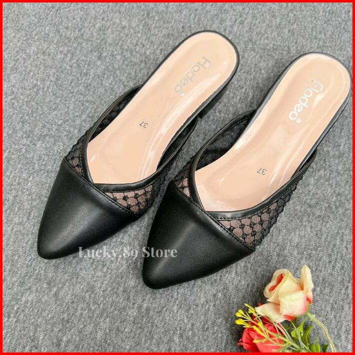 Fladeo Sandal Selop Brukat Wanita Heels 3cm Hl Party Shoes
