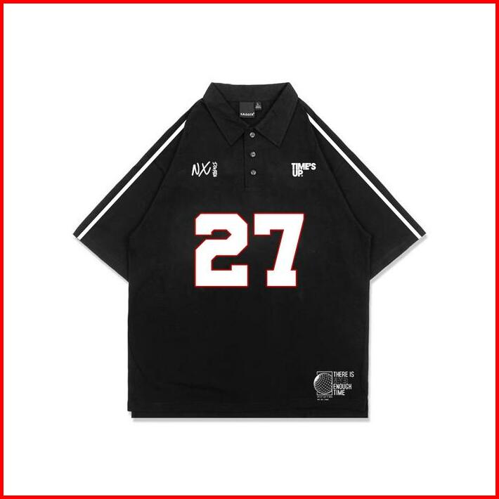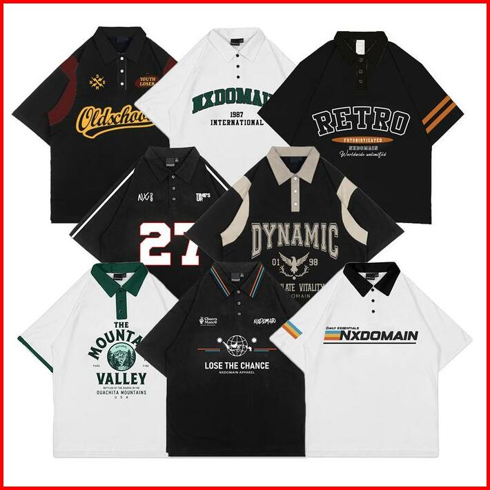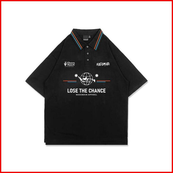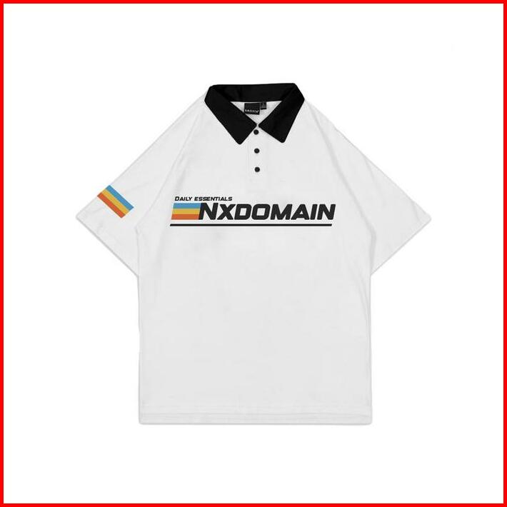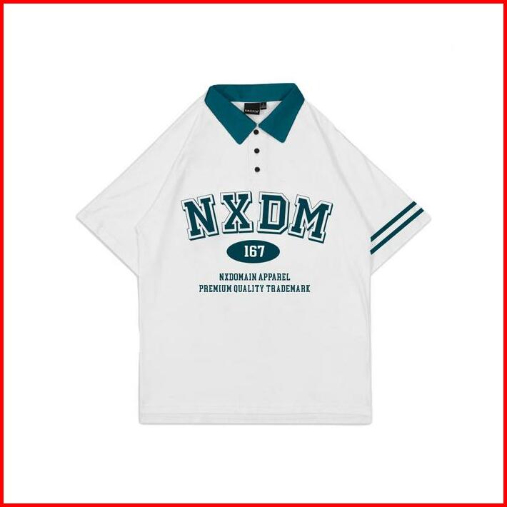 Nxdomain Kaos Oversize Rugby Polo Shirt Black White Distro Cotton Combed 24s Premium Baju Kerah Pria