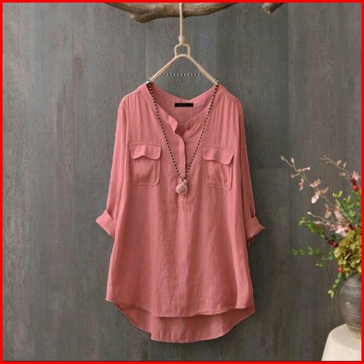Blouse Yumna Atasan Wanita Katun Rayon Polos Putih Hitam Lembut Lilac Nyaman Pink Simple Baju Panjang Linen Casual Top C