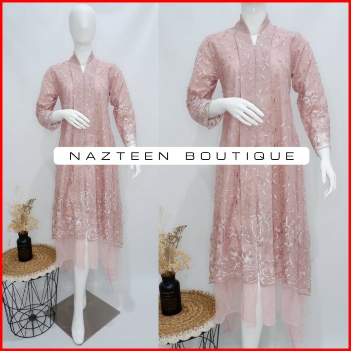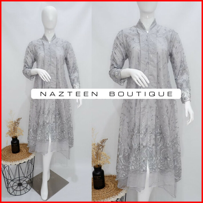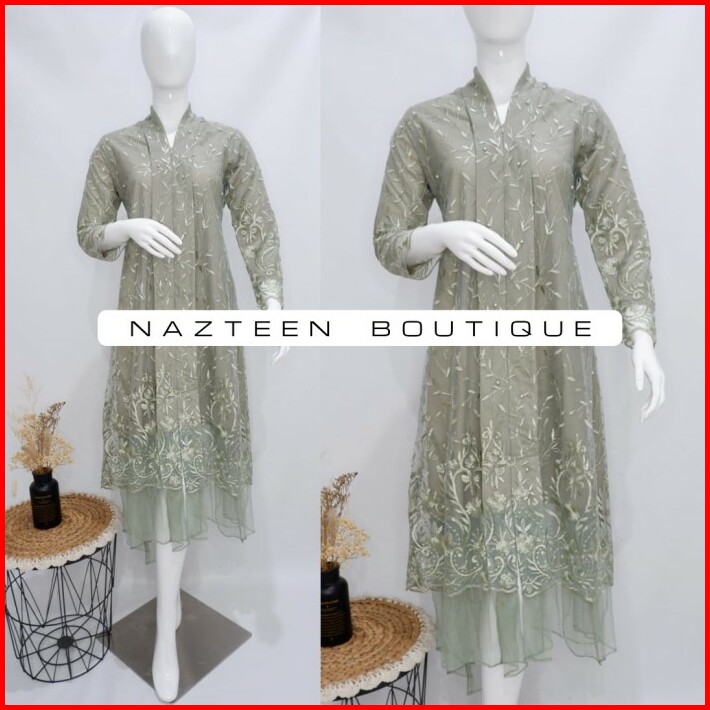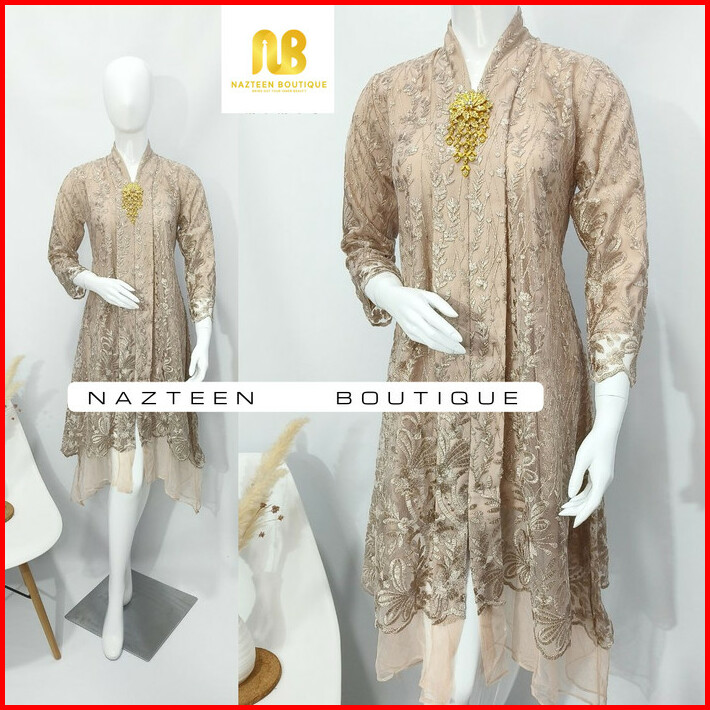 Midi Dress Kebaya Wanita Modern Tunik Brukat Bahan Tille Full Furing