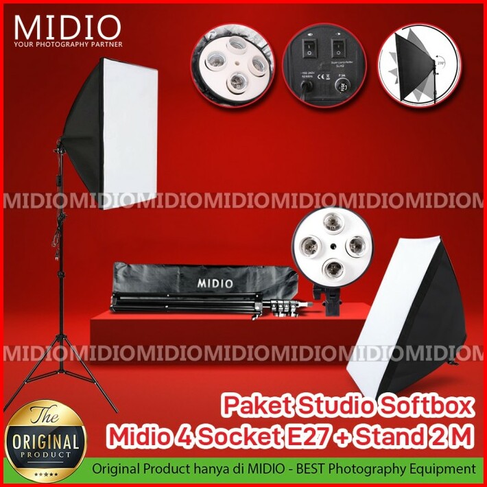 Softbox Lighting Midio Softbox 4 Socket E27 Lighting Studio Stand