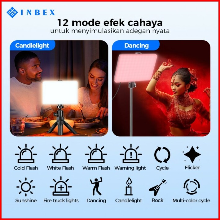 Inbex 8inci Rgb Light Konten Kreator Led Lampu Sorot Lighting Studio Foto Video