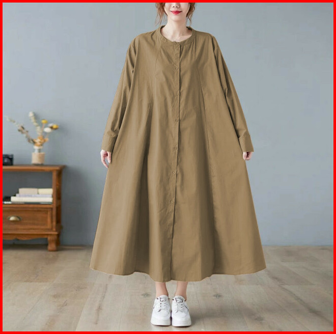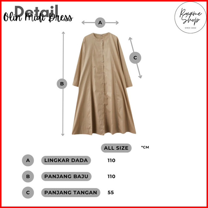 Olin Midi Dress Katun Linen Rami Polos Wanita Hijab Korean Style