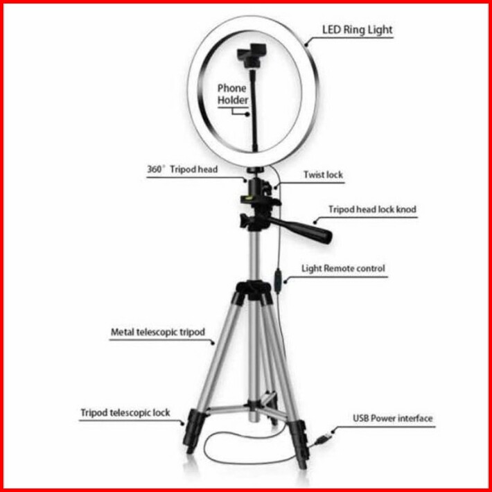 Paket Hemat Ring Light 26cm Tripod 1m 3110 Lampu