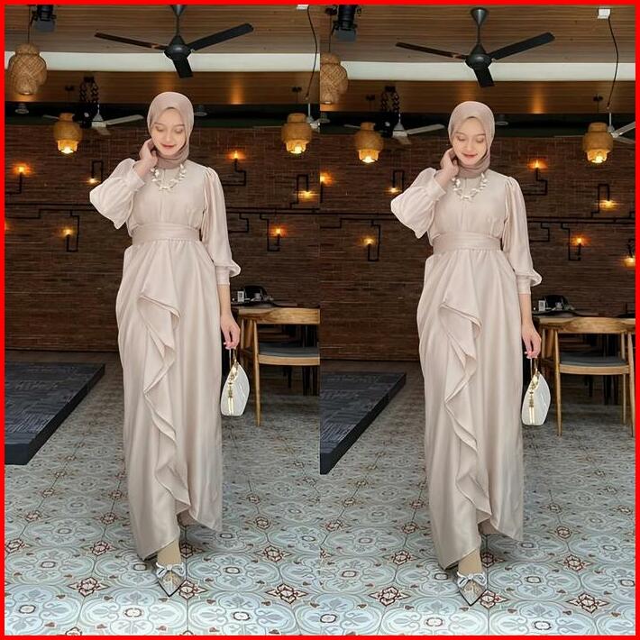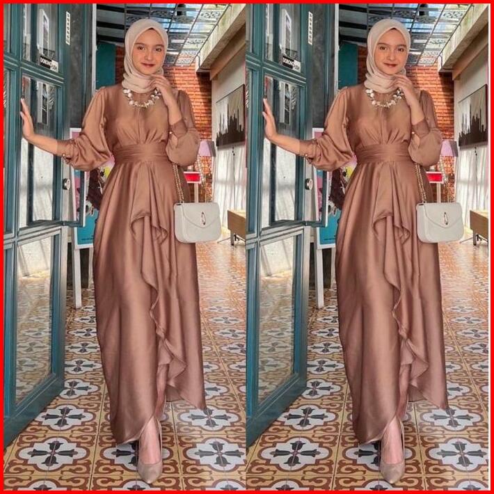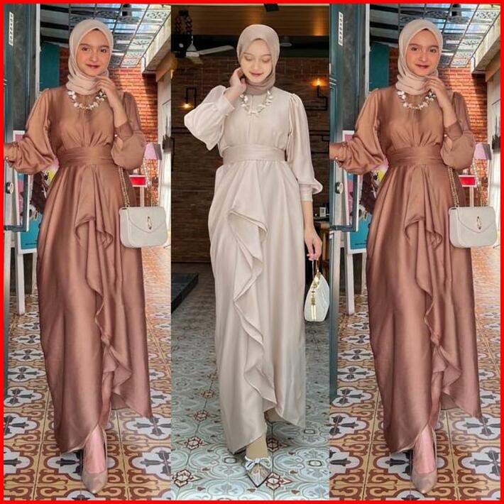 Helodystore Baju Bridesmaid Satin Jusi Premium Dress Velvet Silk Maxi Mewah Kancing Hidup Wudhu Friendly Gamis Muslim Pa