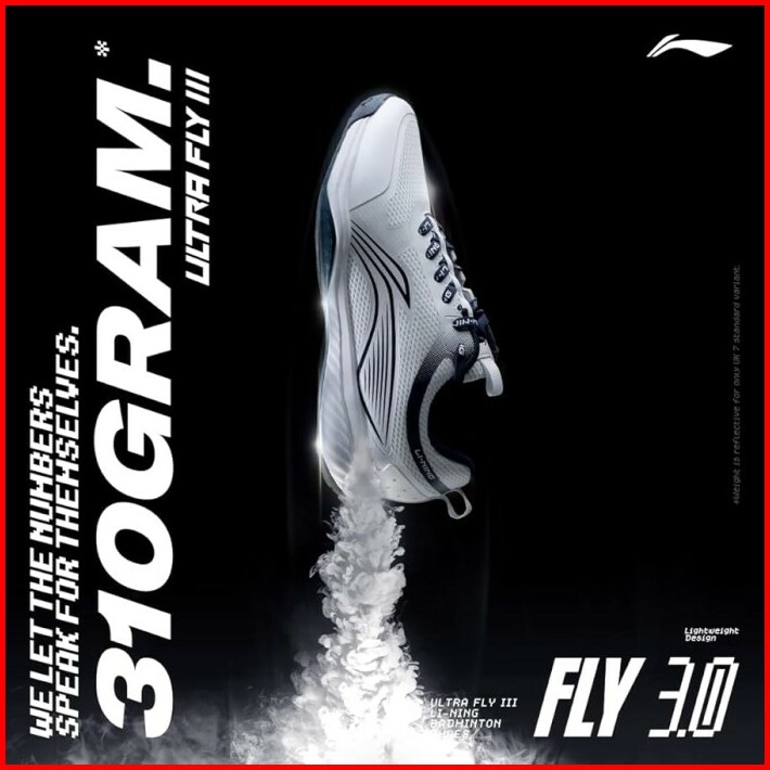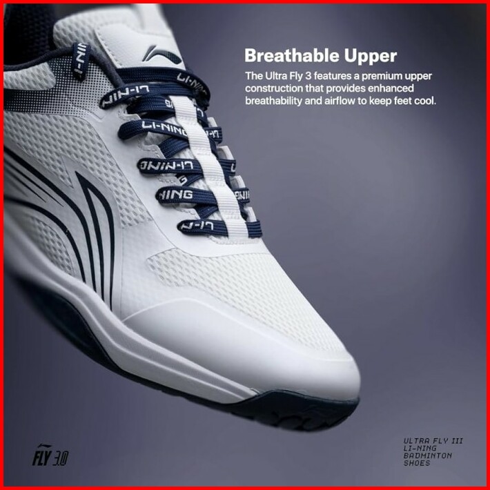 New Sepatu Badminton Lining Ultra Fly Iii 3.0 Aytt053 White Navy