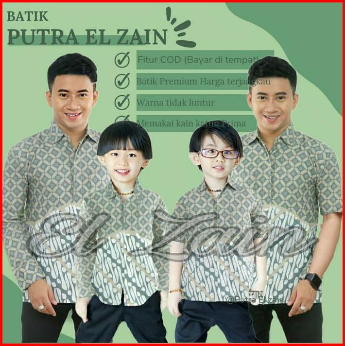 Kemeja Batik Pria Couple Ayah Dan Anak 2-12 Tahun Motif Kawung Sage M L Xl Xxl