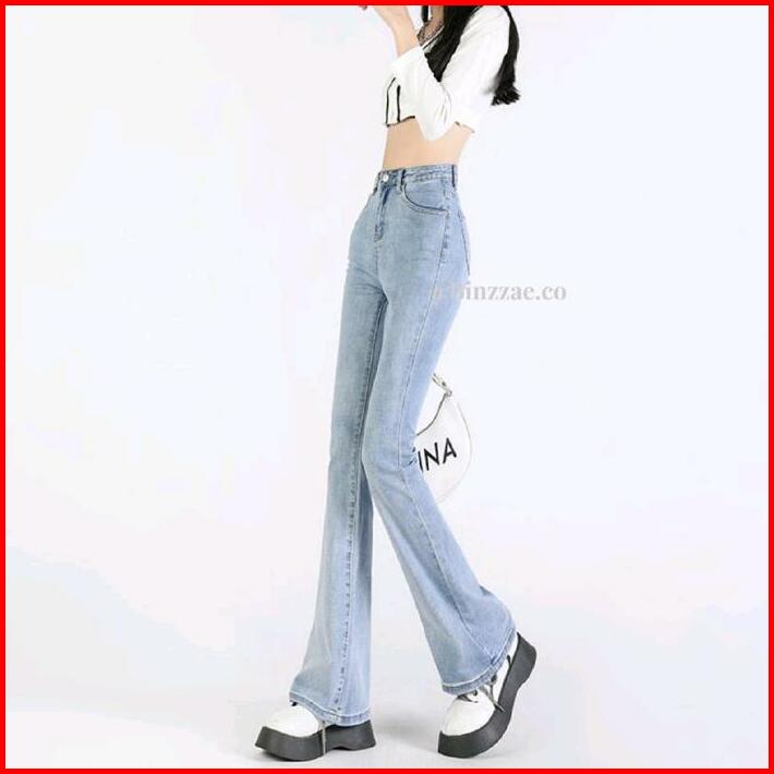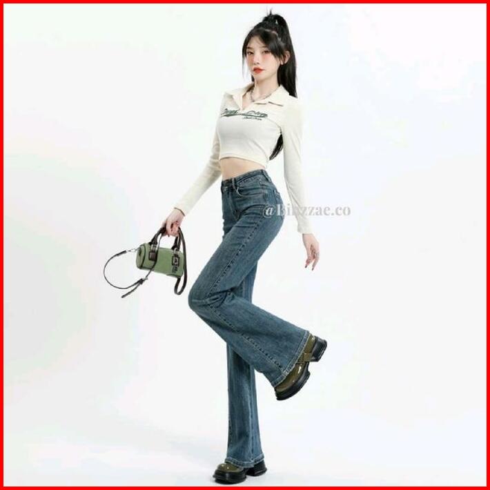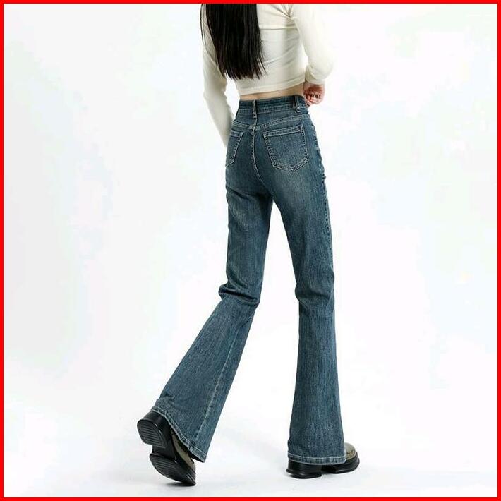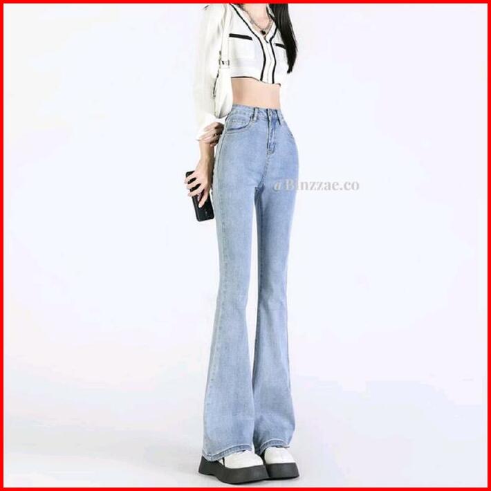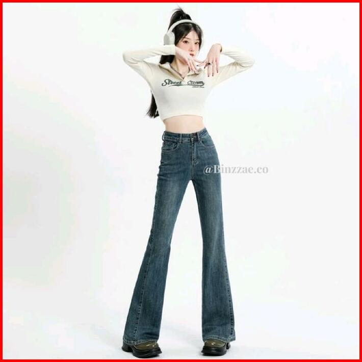 Highwaist Celana Cutbray Jeans Wanita Biru Retro Impor Light Nyaman Melar Panjang