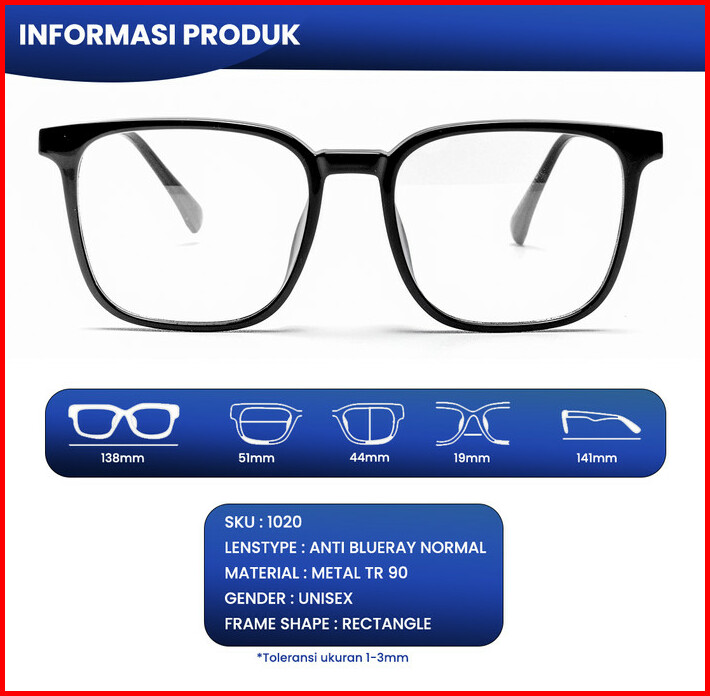 Kacamata Minus Metal Tr Kotak Anti Blueray Pria Wanita
