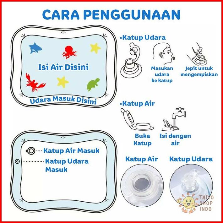 Taiyo Water Playmat Baby Tummy Time Alas Matras Bantalan Air Bayi Anak Portable Lingkaran Persegi Panjang