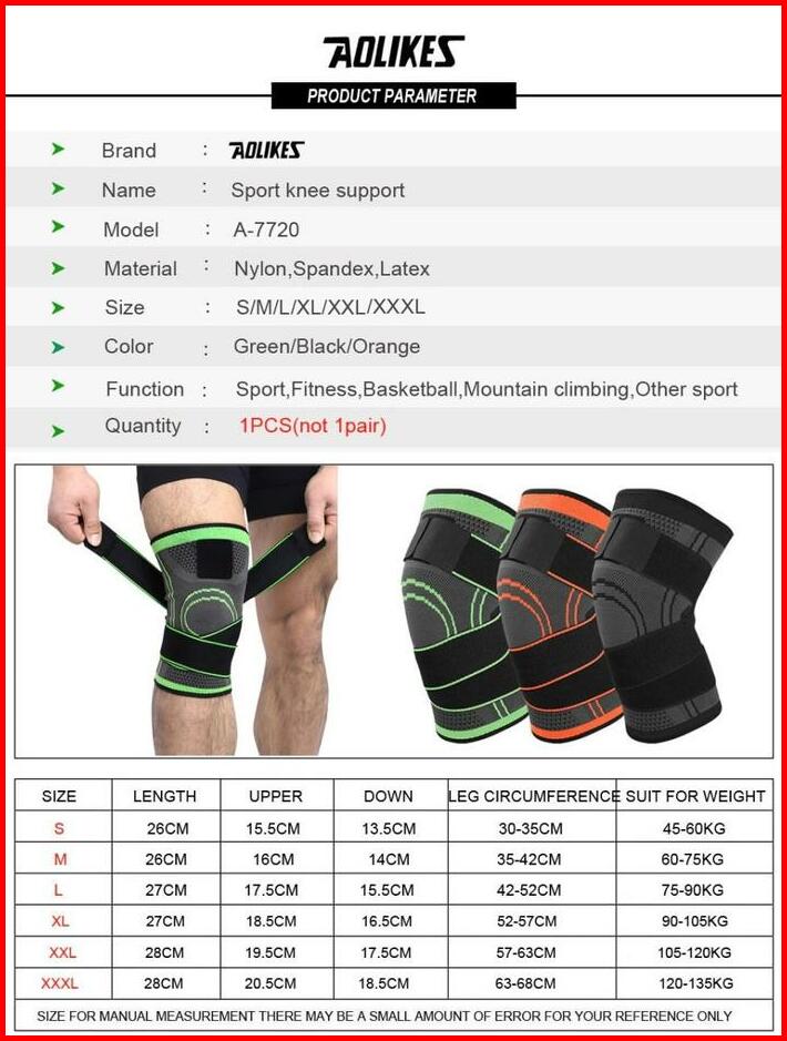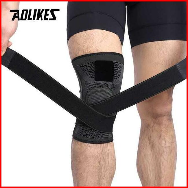 Aolikes Deker Lutut Pelindung 1pcs A7720 Knee Support Dengan Strap Warp Elastic Gym Bracer Lutut Satuan