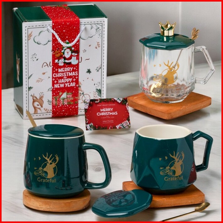 Petitemaison Deer Mug Gelas Hijau Keramik Gambar Rusa Hampers Natal Hadiah Souvenir