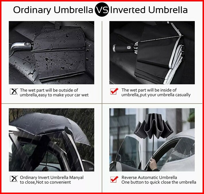 Payung Lipat 3 Otomatis Reverse Umbrella Reflective Terbalik
