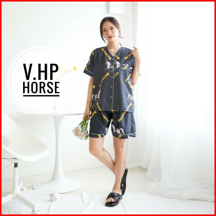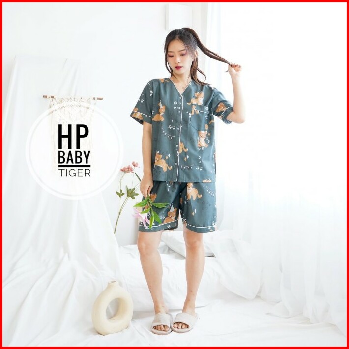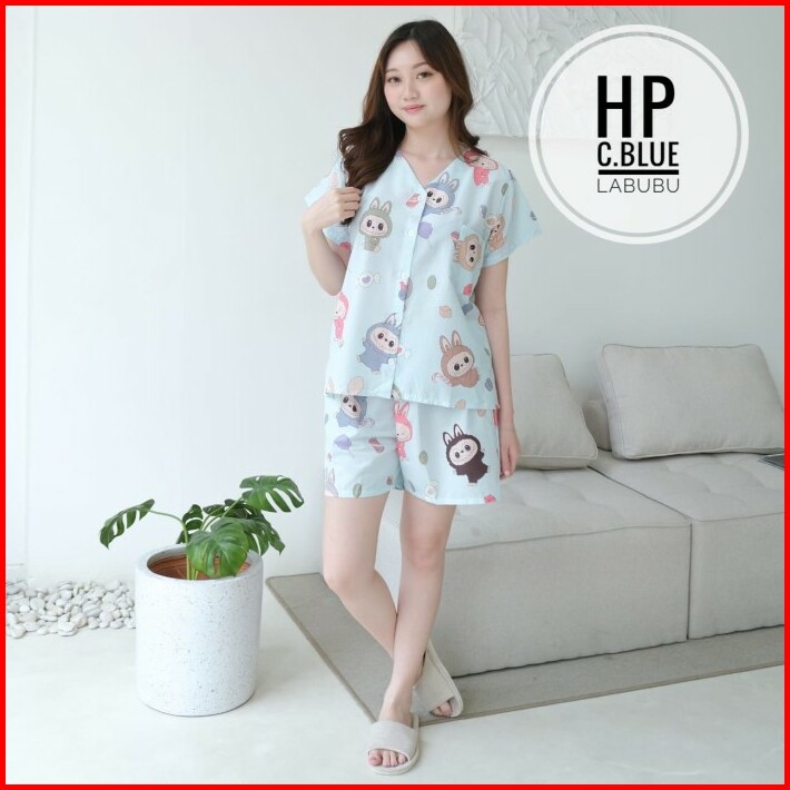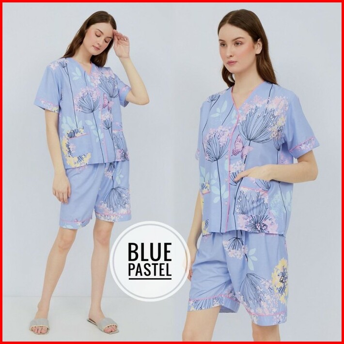 Baju Tidur Wanita Piyama Dewasa Vneck Celana Pendek Katun Adem