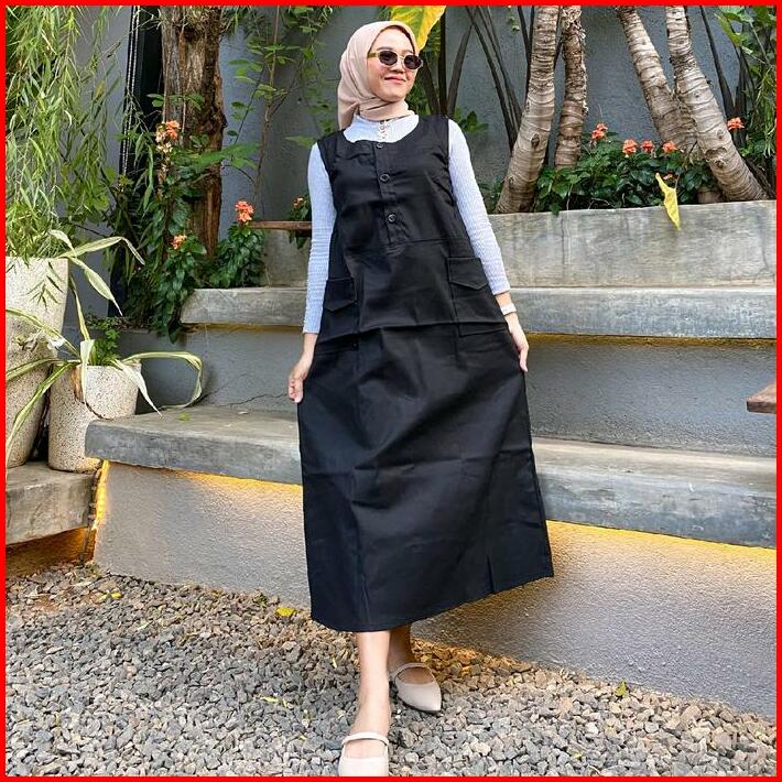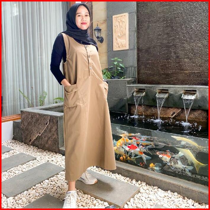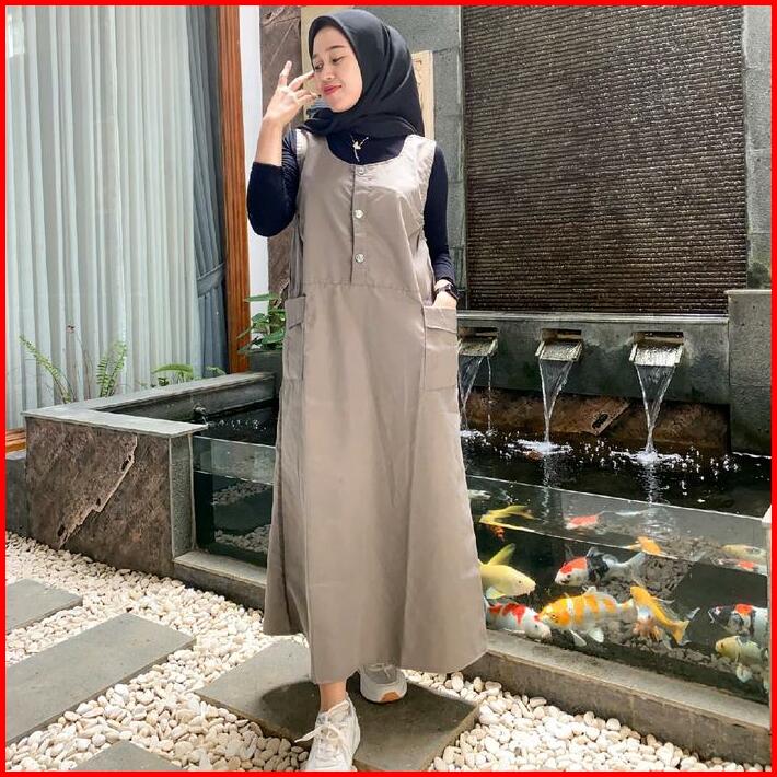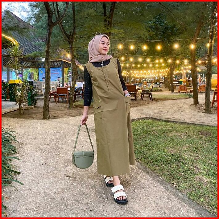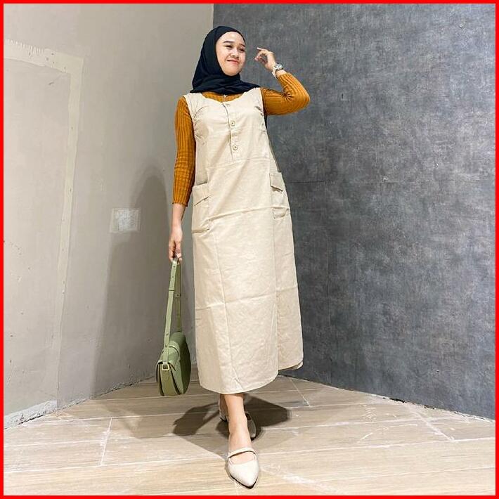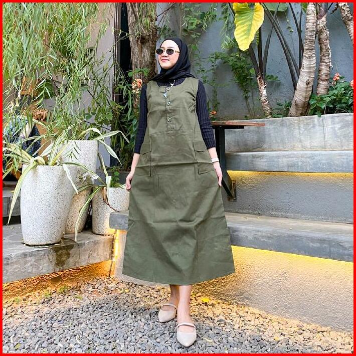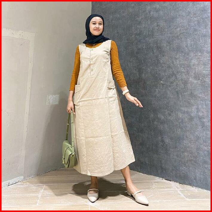 Dini Fashion-overall Temi Kancing Dress Nyaman Katun Twill Premium Ld 110-120 Max Bb 80kg Panjang Wanita