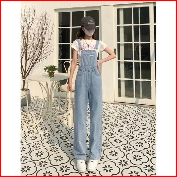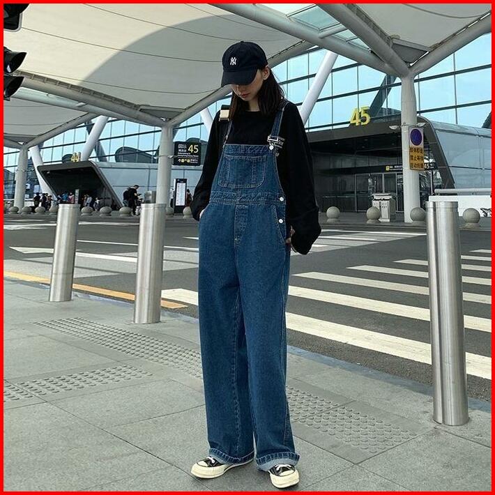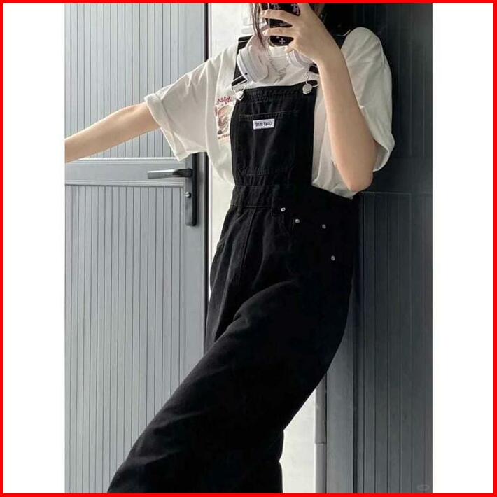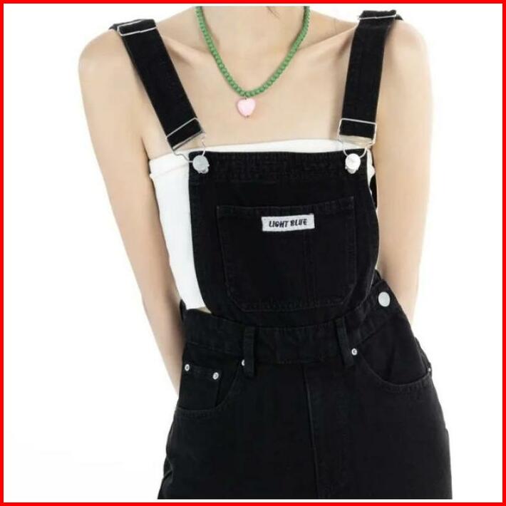 Overall Jeans Korea Wanita Hitam Denim Celana Kodok Jeans Wanita Korea Jumpsuit Jeans Wanita Korea Realpict
