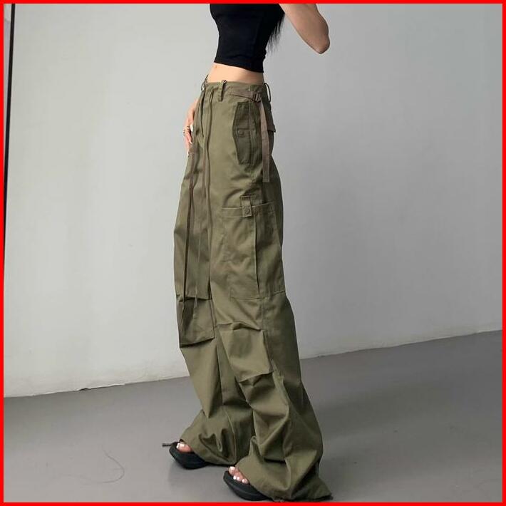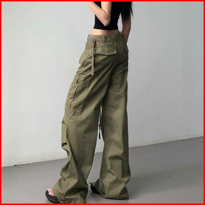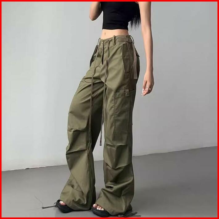 Premium Celana Cargo Wanita Olahraga Hitam Overall Kasual Multi-saku Untuk Wanita