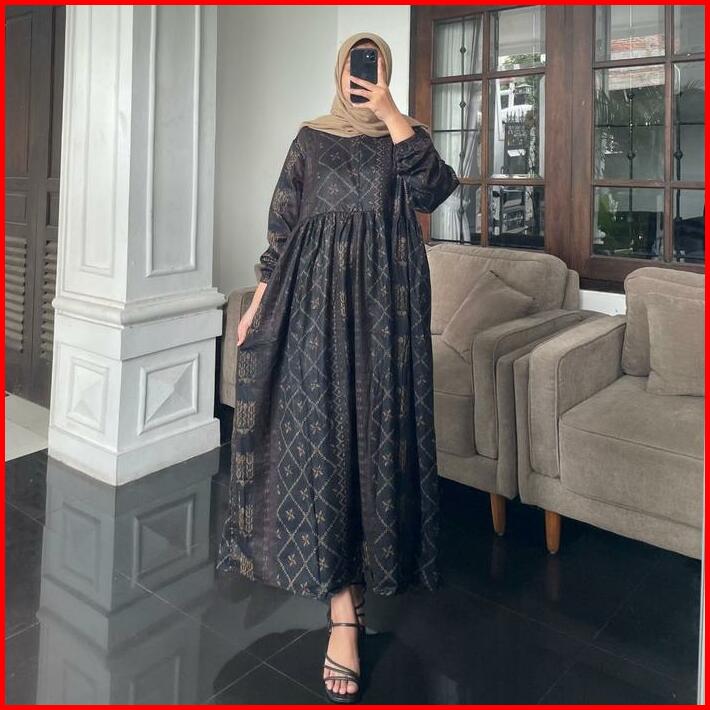 Midi Dress Rayon Motif Bunga Midi Dress Rayon Premium Jumbo Busui Zipper Gamis Wanita Dres Inara Dewasa Muslim