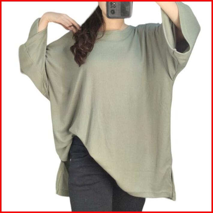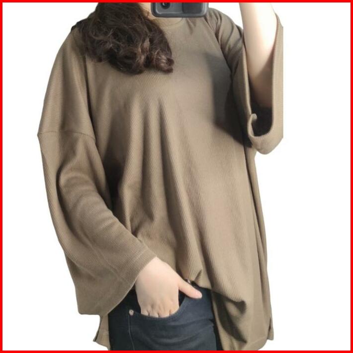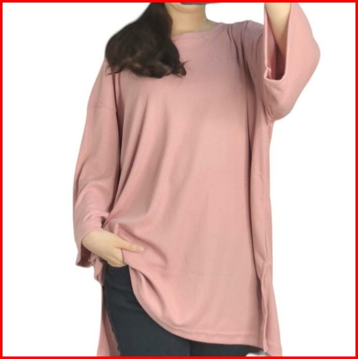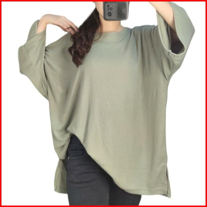 Premium Knit Rib Slit Oversize Knit Rib Jumbo Slit Ld 130-160 Bigsize Knit Jumbo Setrip Atasan Knitwear Wanita Basic Baj