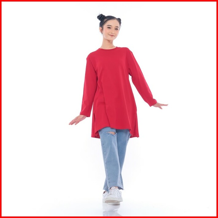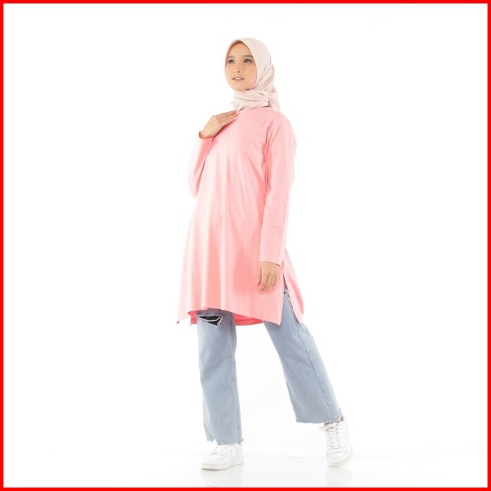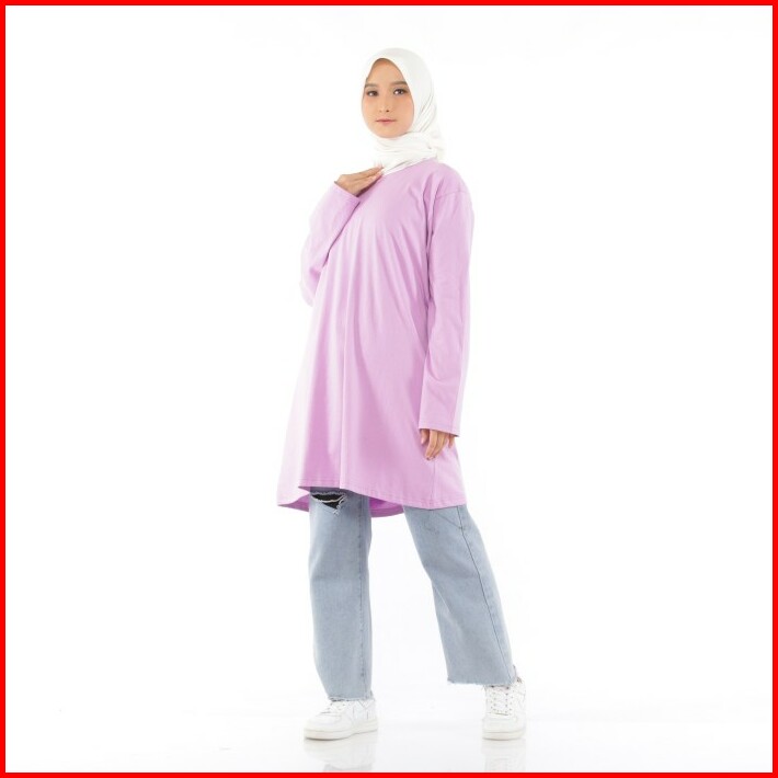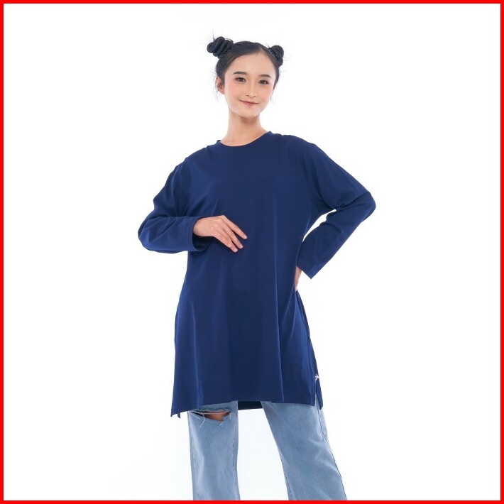 Kaos Polos Tunik Wanita Jumbo Lengan Panjang Cotton Combed
