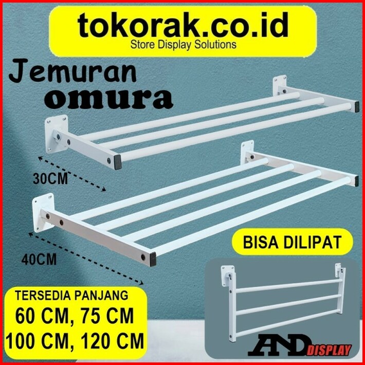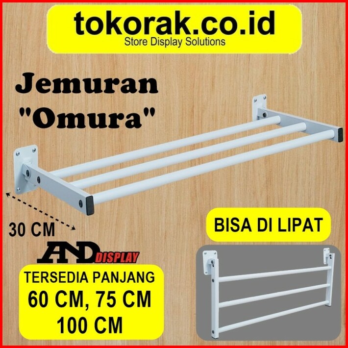 Jemuran Dinding Lipat Omura 60 75 100 120 Cm Gantungan Handuk Baju