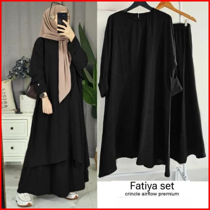 One Set Abaya Fatiya Set Abaya Matt Cringkle Airflow Premium Tunik Rok Jumbo Baju Wanita Muslim Dewasa Crinkle Nyaman