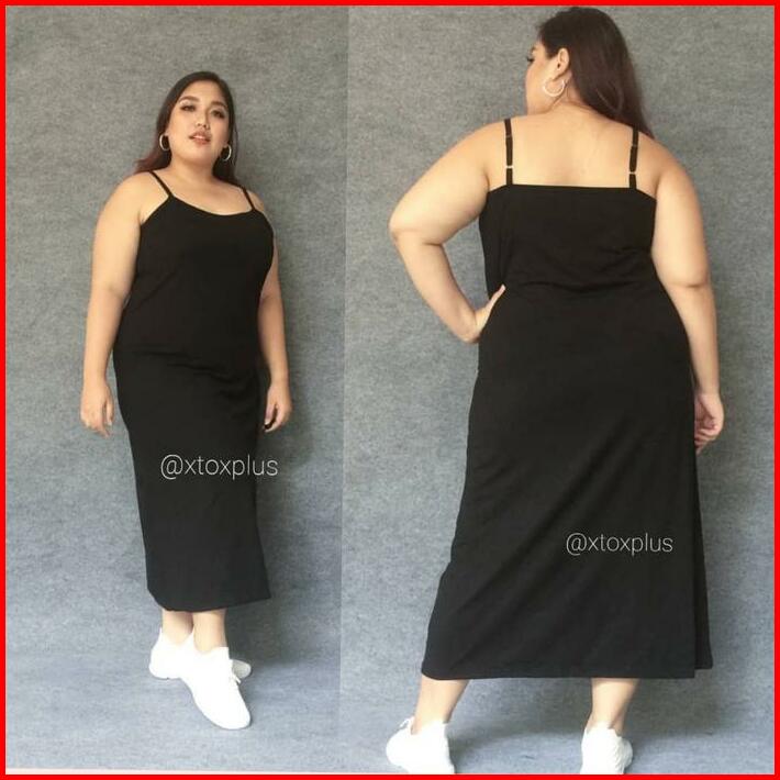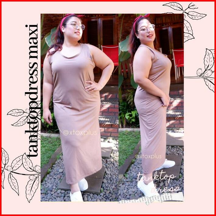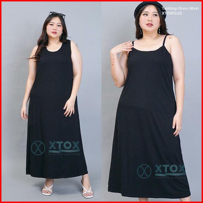 Tanktop Dress Maxi Jumbo Bigsize Plus Size Casual Panjang Rayon Wanita Tebal