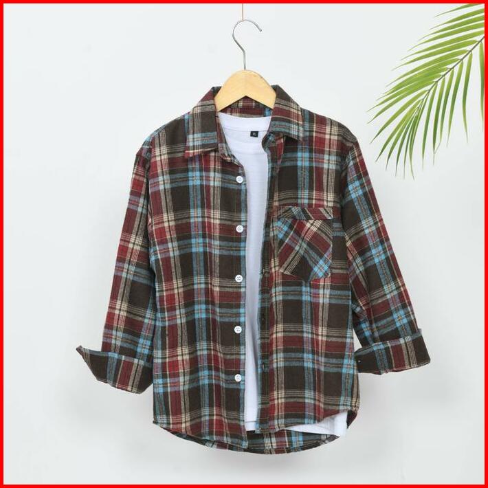 Kemeja Flanel Anak Laki Laki Anak Perempuan Distro Motif Kotak Terbaru Atasan Remaja 5-14 Tahun