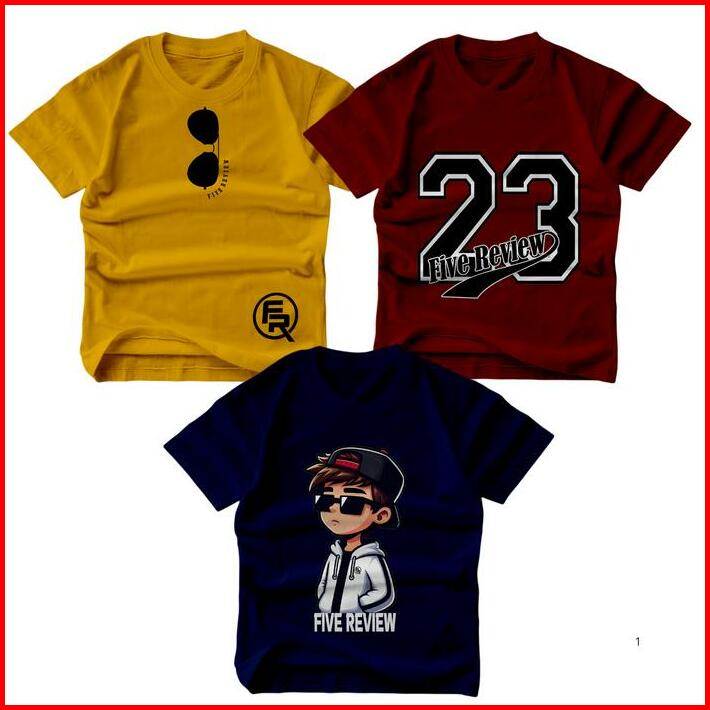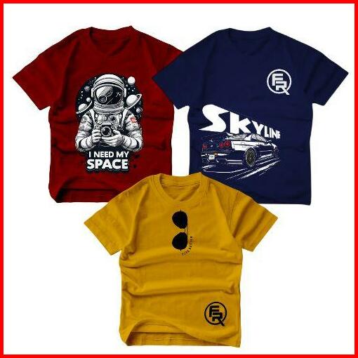 Paket 3 Pcs Baju Kaos Distro Combinasi Anak Laki-laki Usia 3-12tahun Motif Terbaru Fashion Cowok Pakaian Atasan