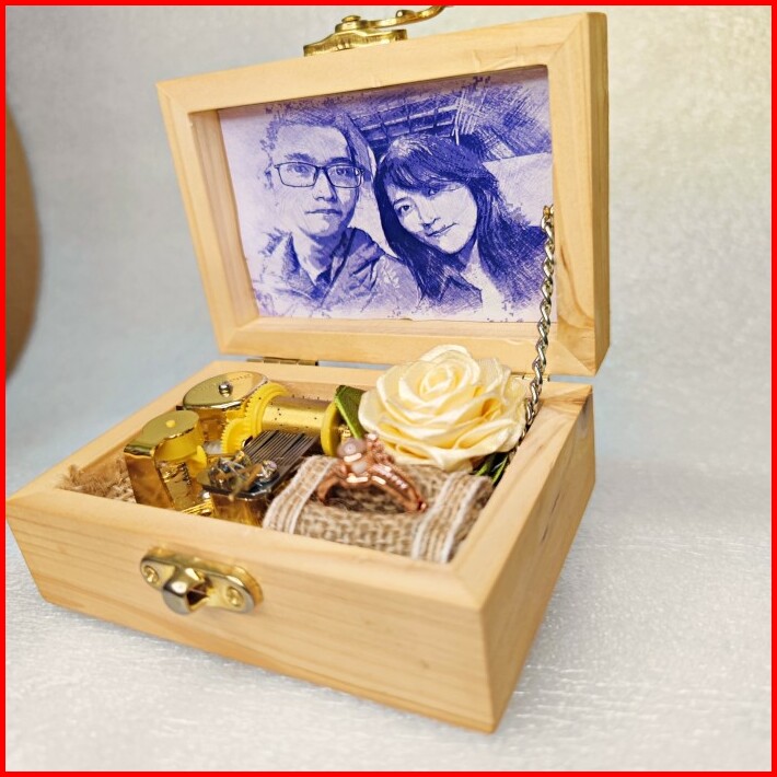 Music Box Kotak Musik Kayu Acriliyc Otomatis Bisa Custom Foto