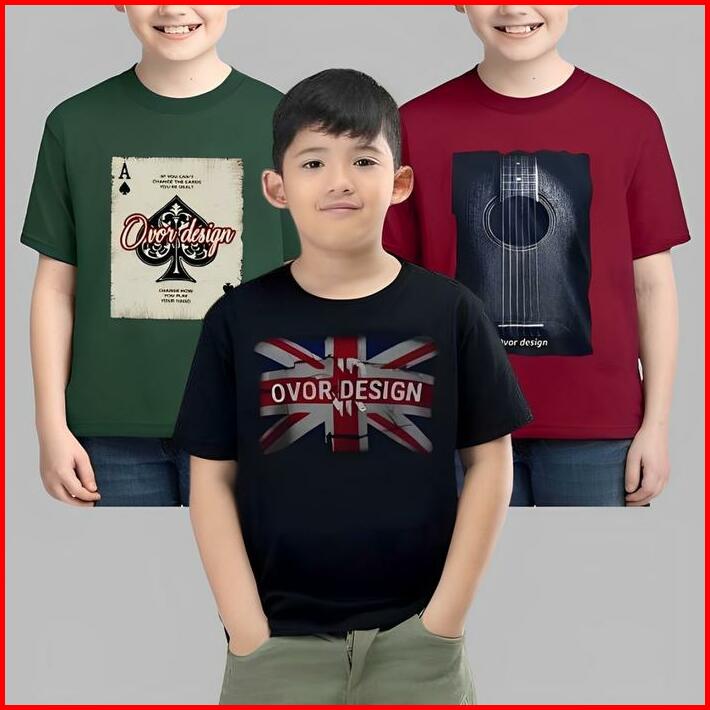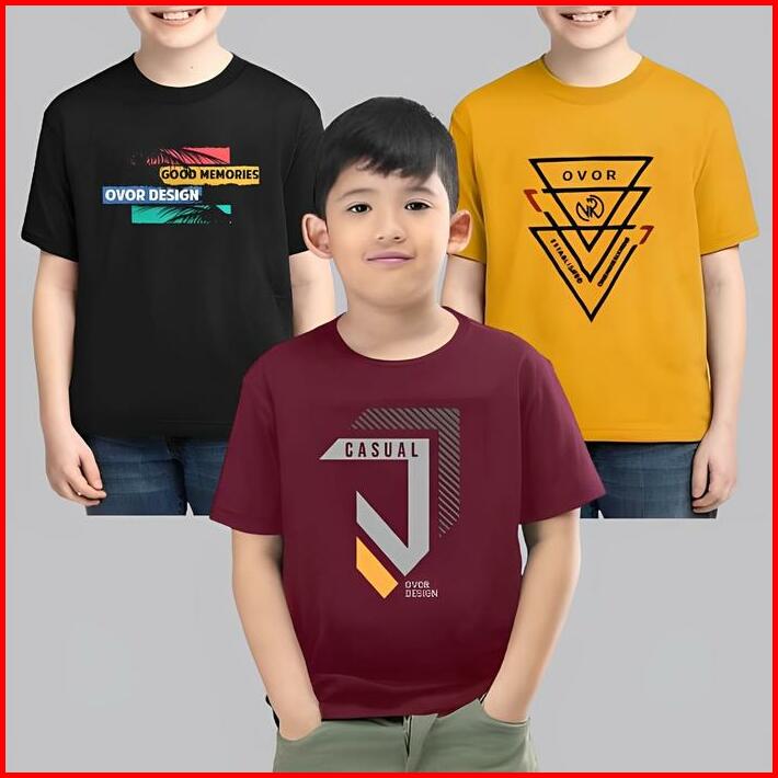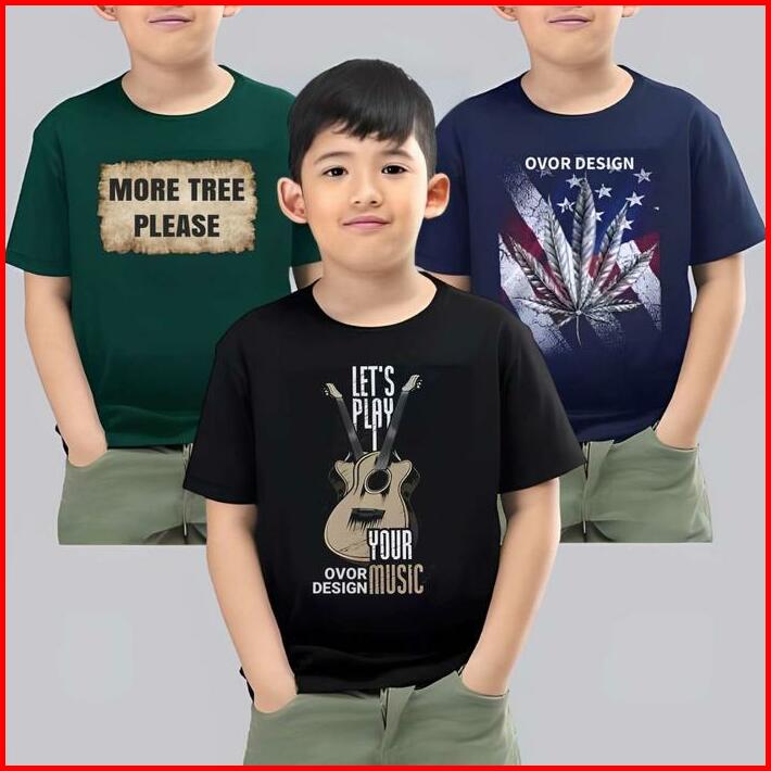 Kaos Anak 3pcs Baju Anak Laki Laki Kaos Anak Distro Lengan Pendek Bahan Katun Usia 10-15 Tahun