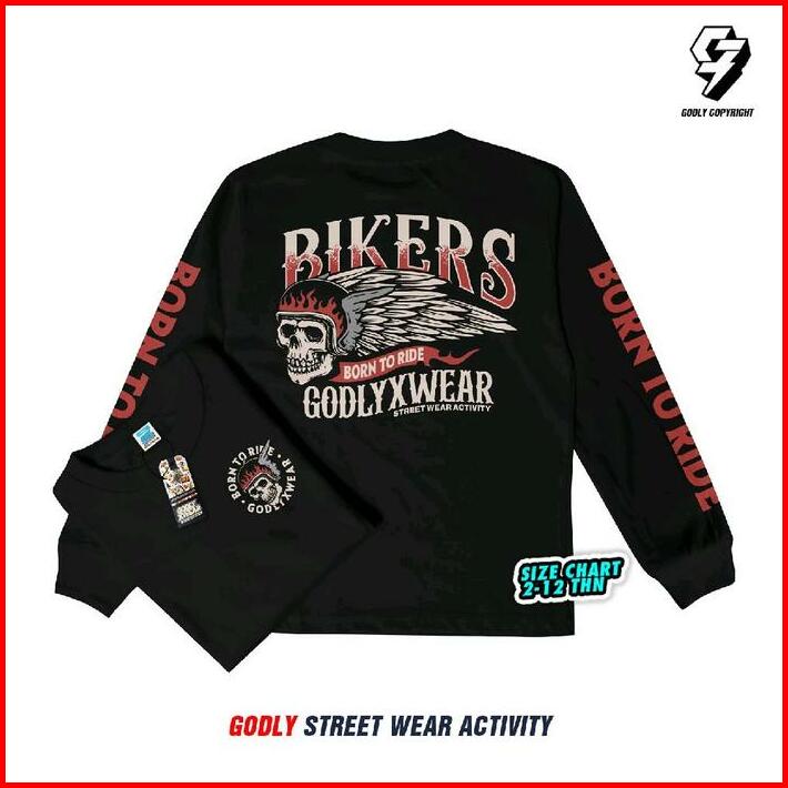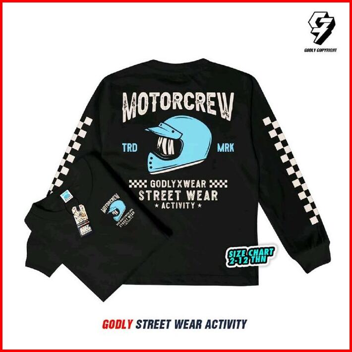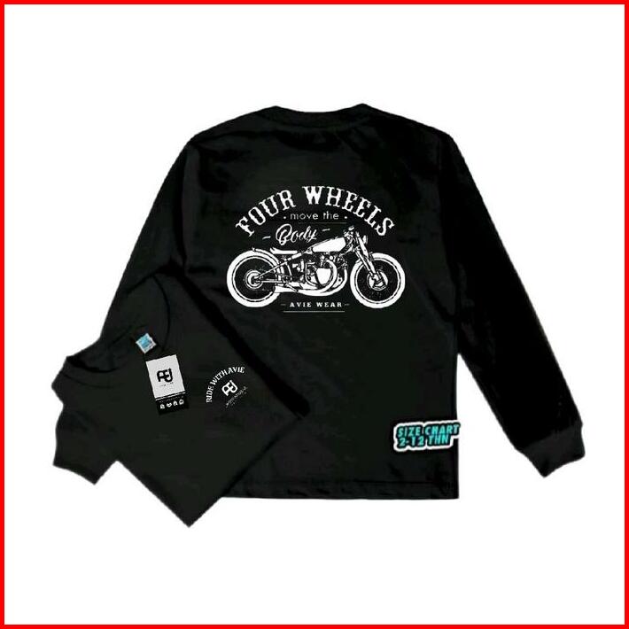 Baju Atasan Kaos Anak Laki-laki Lengan Panjang Motif Motor Usia 1-12 Tahun