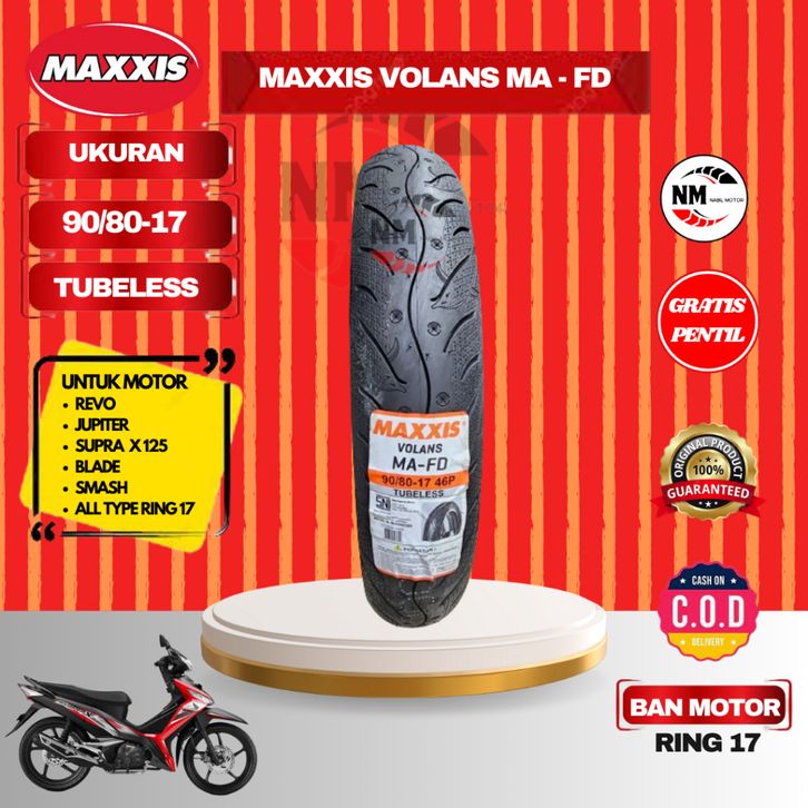 [ FREE ONGKIR ] Ban Luar Maxxis 90/80-17 Volans MA-FD Tubeless Bonus Pentil Tubeless