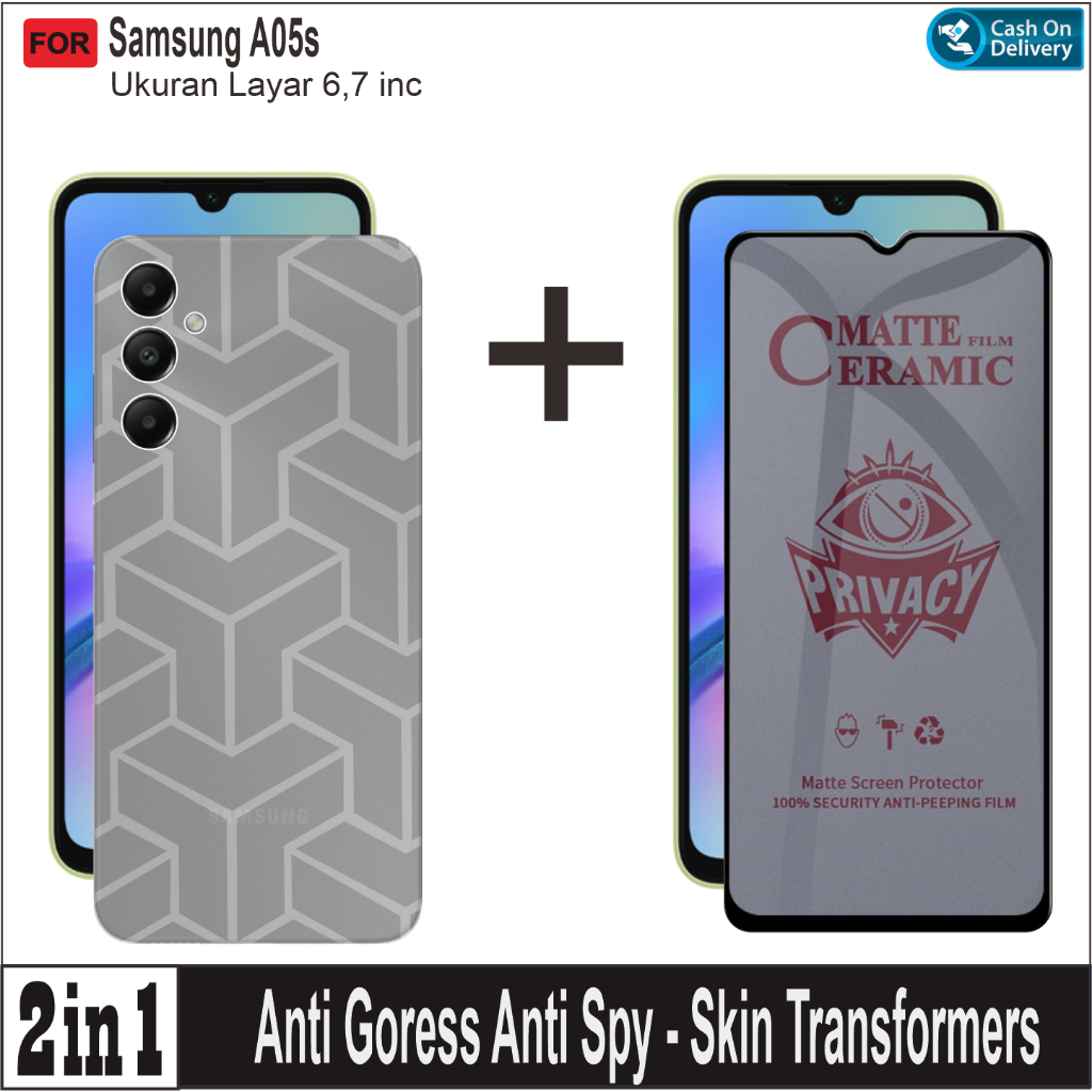 Paket 2in1 Anti Gores Ceramic SPY Samsung A05 A05s A06 A15 A25 A35 A55 Free Skin Carbon 3D